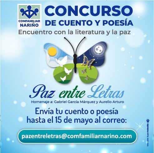 La Secretaría de Educación Departamental de Nariño y la Caja de Compensación Familiar de Nariño, se permiten extender una cordial invitación a los rectores, docentes y estudiantes de todos los niveles educativos para que participen del primer concurso de cuento corto y poesía, denominado: “Paz entre letras”. Homenaje a: GABRIEL GARCÍA MÁRQUEZ Y
