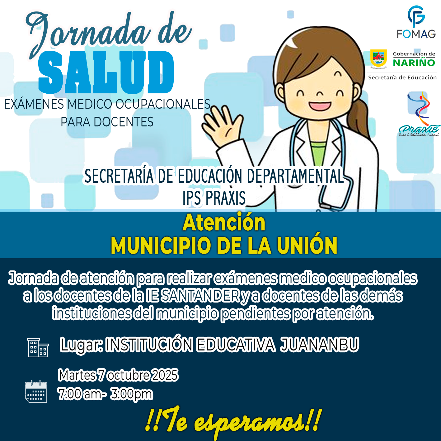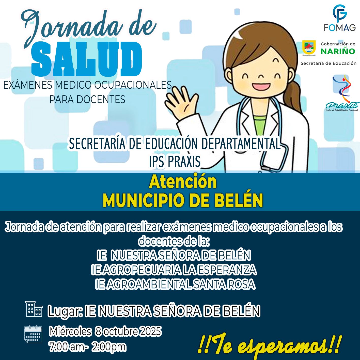 Se informa al personal docente, directivo docente y beneficiarios del servicio de salud que el Fondo Nacional de Prestaciones Sociales del Magisterio (FOMAG) tiene contratados los siguientes servicios con la entidad SOMEB I.P.S., en el marco...